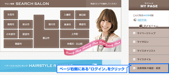 ビューティーヘアのトップページにある新規会員登録ボタンをクリックして下さい。