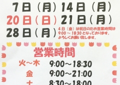 営業時間 火~金9:00~18:30 土8:30~18:30 日8:30~17:30