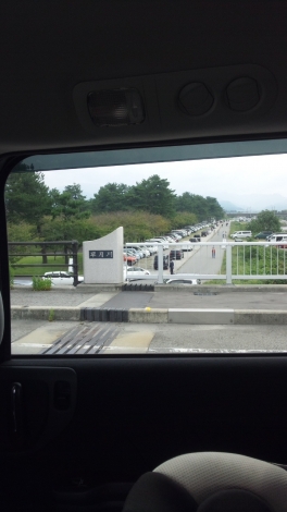 1.5キロの渋滞のうえに、駐車場がなく河川敷のおくまで行かないと車がとめれず・・・