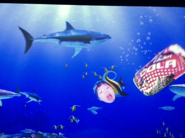自分の顔をとってお魚になれて、しかも餌も自分で選んで食べさせるっていう…ただ次男が選んだ餌はなぜかコーラの空き缶…(-_-;)