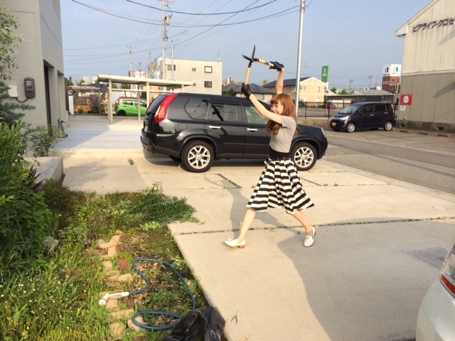 高い所の枝が切れなかったので、Yukaちゃんに切ってーって頼んだら…助走つけますから!って(笑)