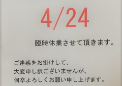 こんにちは厚手のコートがいらない気温になってきて嬉しいですね今日は臨時休業のお知らせです。年に数回、臨時休業させて頂いており、今月24日(月)も臨時休業させていただきますm(__)mお客様にはご迷惑をおかけ致しますが、よろしくお願い致します。前後の、23日や25日は通常...